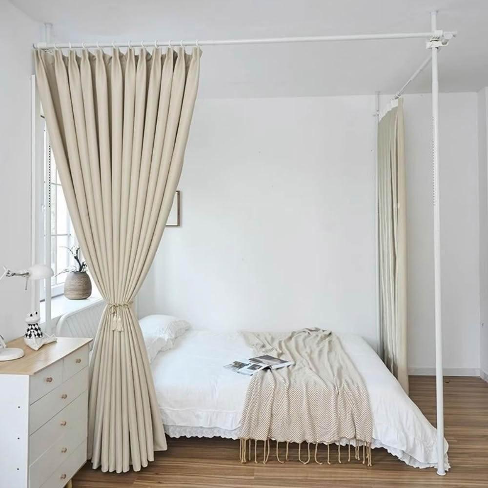 客廳屏風隔断帘 頂天立地桿隔斷簾 房間床簾 出租房床簾 支架一體式隔離簾 隔斷屏風 遮擋簾 遮醜簾