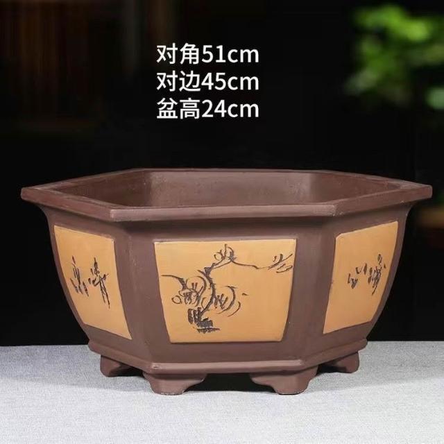 紫砂花盆 超大口徑六方花盆 發財樹花盆 栽景盆 果樹盆 種菜盆 大型種植盆專用 種鐵樹大花盆 透氣花盆