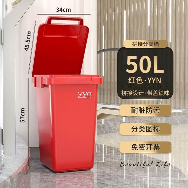 防臭密封日式垃圾桶 YYN可拚接垃圾桶 四色家用廚房防臭帶蓋大容量飯店後廚 大容量50L垃圾桶