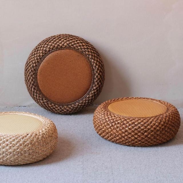 日式簡約藤編坐墩 INS風精品蒲團坐墊 實木編藤坐墩 客廳地上草編榻榻米竹編凳子 編藤椅子 手工編織凳子 編藤椅