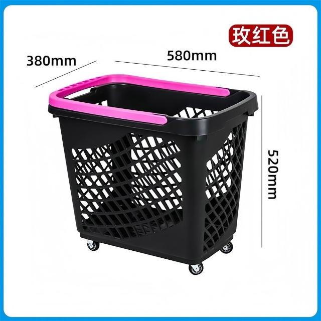 加厚帶拉桿帶輪洗衣店收納籃 超市購物籃 商場購物筐 拉桿帶輪子洗衣籃 手提塑料框家用大便利店買菜籃