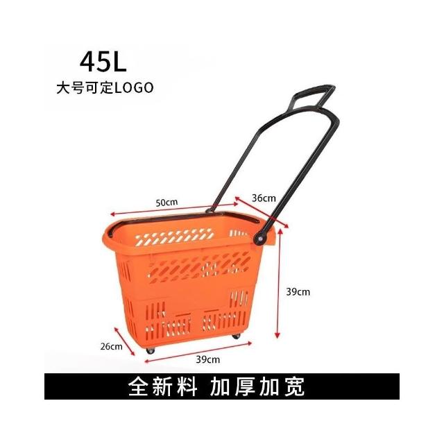 加厚帶拉桿帶輪洗衣店收納籃 超市購物籃 商場購物筐 拉桿帶輪子洗衣籃 手提塑料框家用大便利店買菜籃