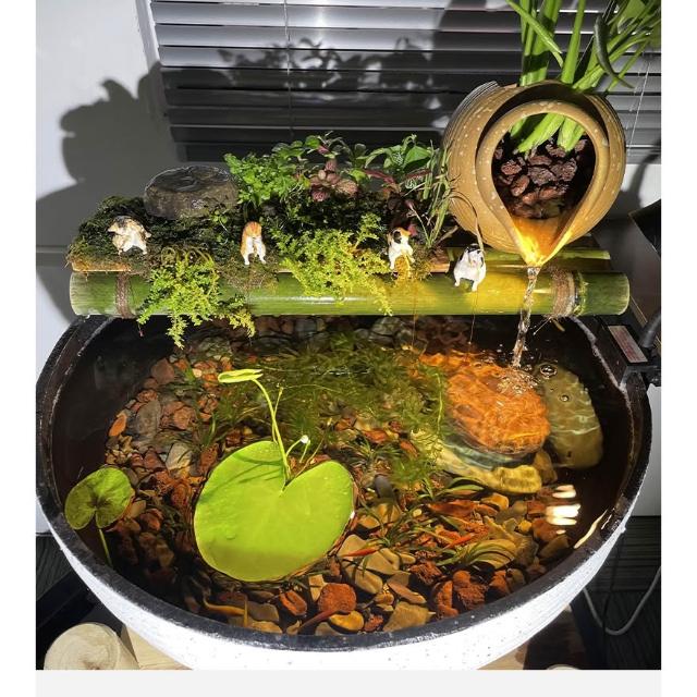 古法養魚缸 生態缸 微景觀家用陽台仿石頭水耕池客廳免打理碗蓮盆造景缸 水族缸 水族箱 生態魚缸 迷你魚缸
