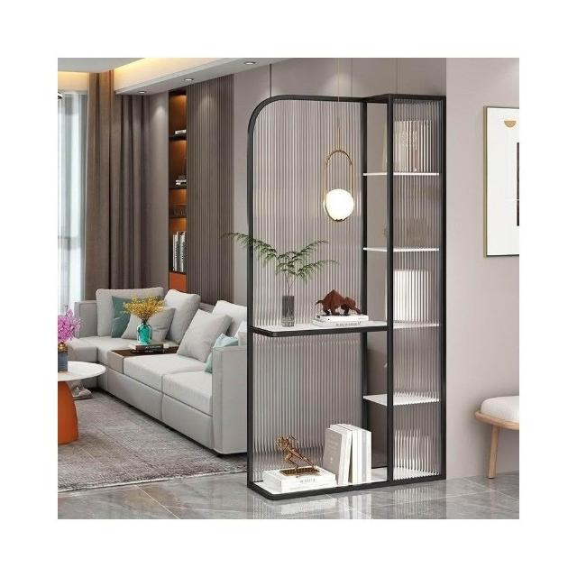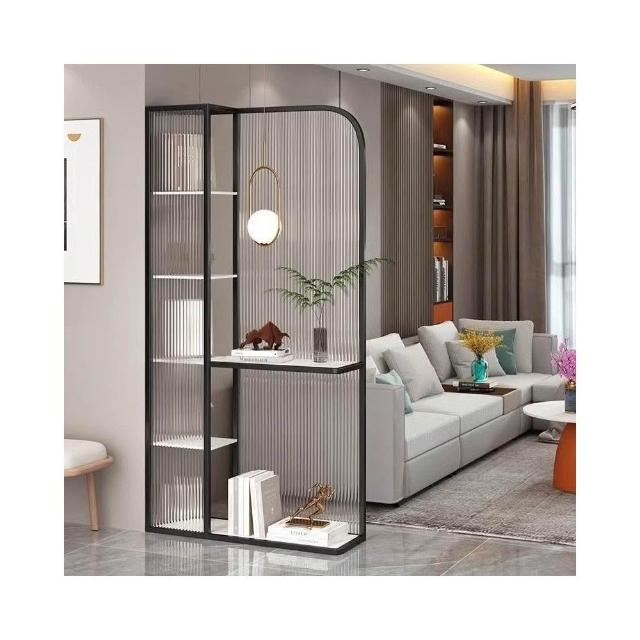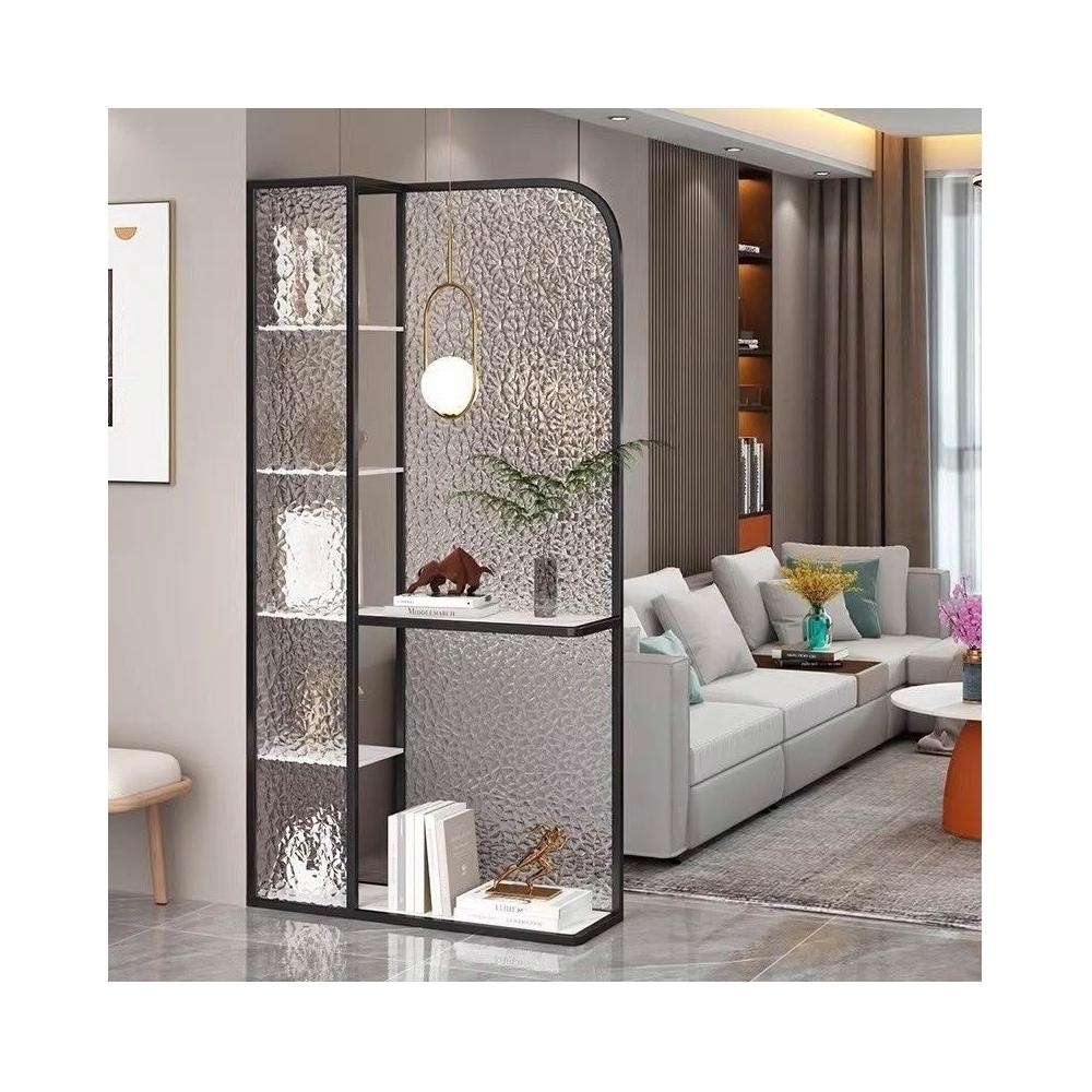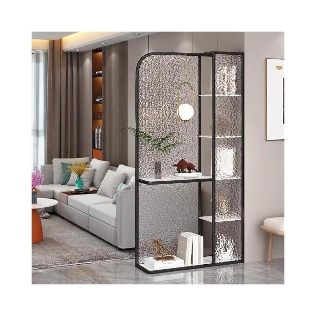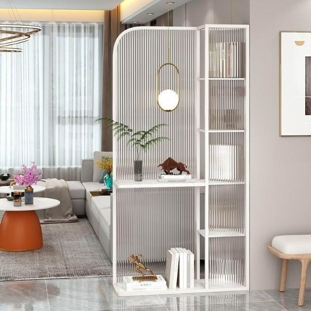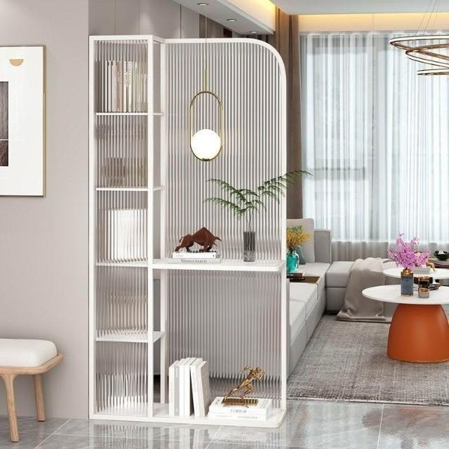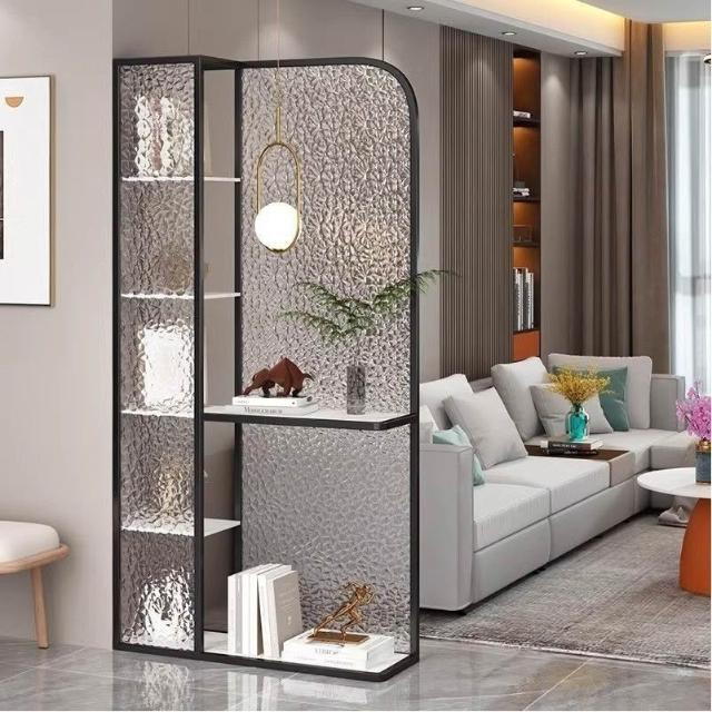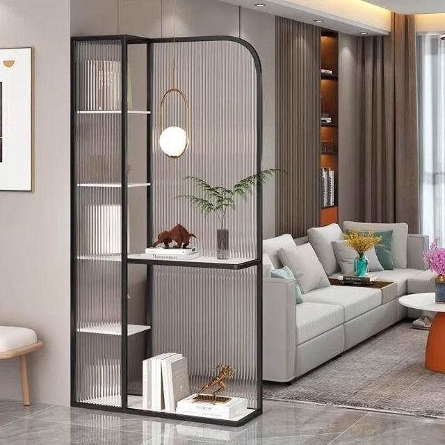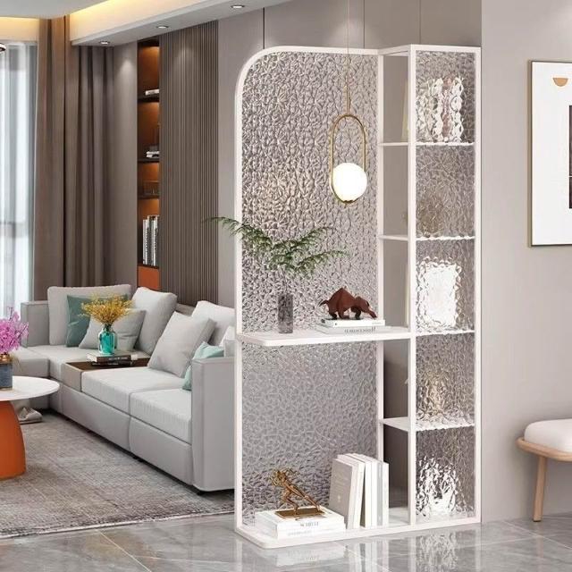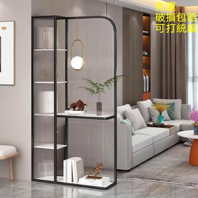 客廳隔斷屏風 進門屏風 廳玄關櫃 簡約半透屏風 現代沙發屏風 入戶對門屏風 長虹水紋玻璃隔斷 屏風隔斷置物架