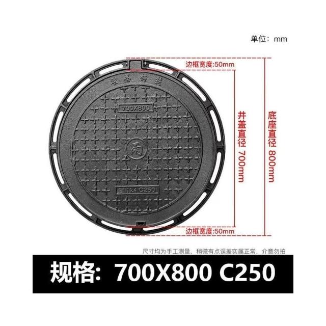 鑄鐵化糞池蓋球墨鑄鐵井蓋圓形重型方形雨水防沉降井蓋下水道陰井污水沙井蓋