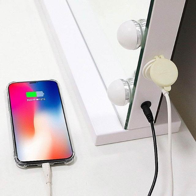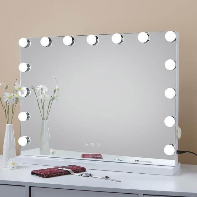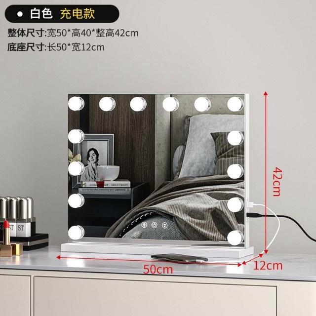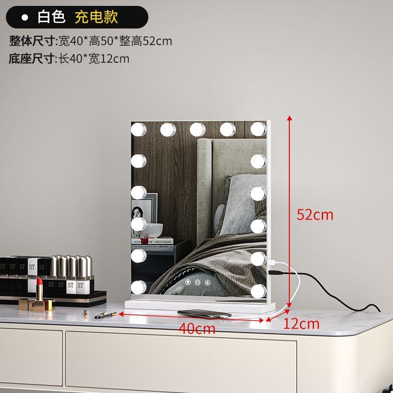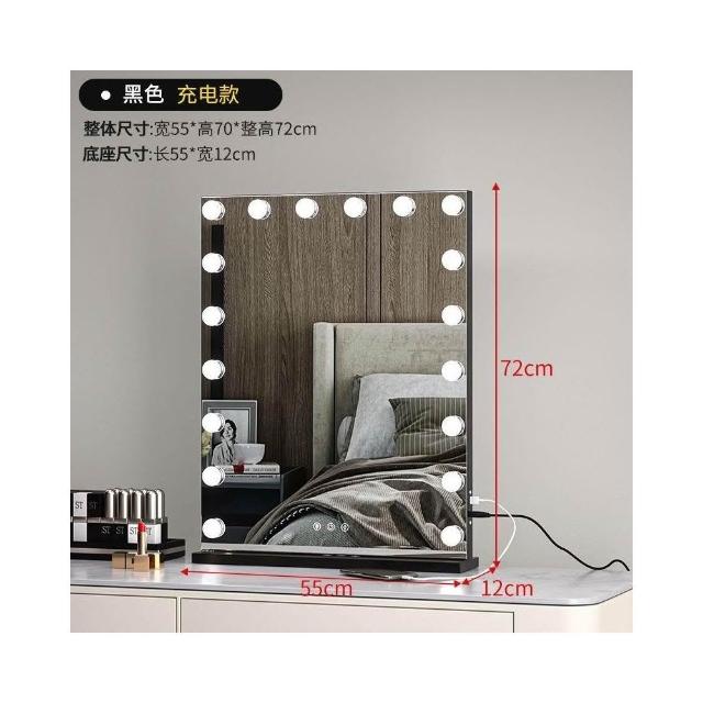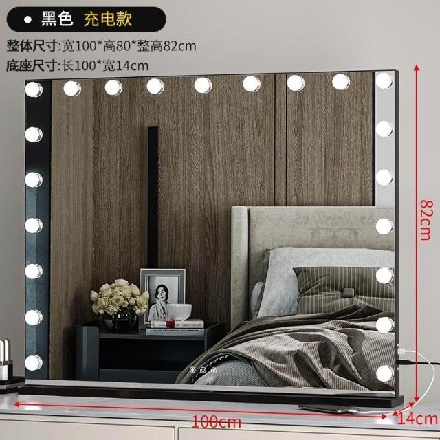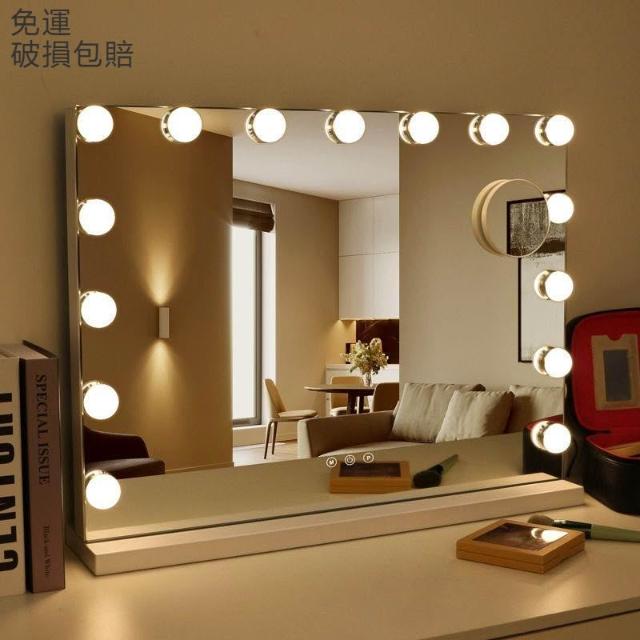 化妝鏡 梳妝台 燈泡美妝鏡 大號桌面鏡 復古鏡子 臺式固定款智能補妝鏡高清鏡子