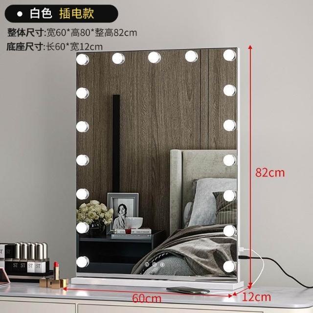 化妝鏡 梳妝台 燈泡美妝鏡 大號桌面鏡 復古鏡子 臺式固定款智能補妝鏡高清鏡子