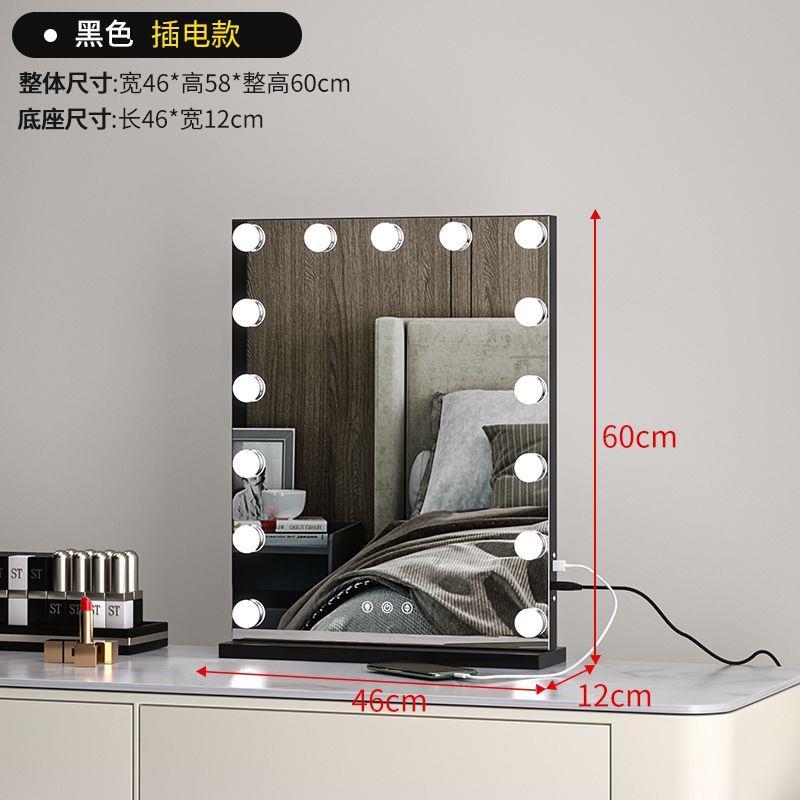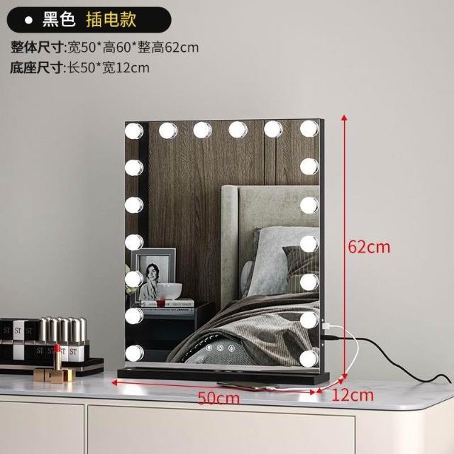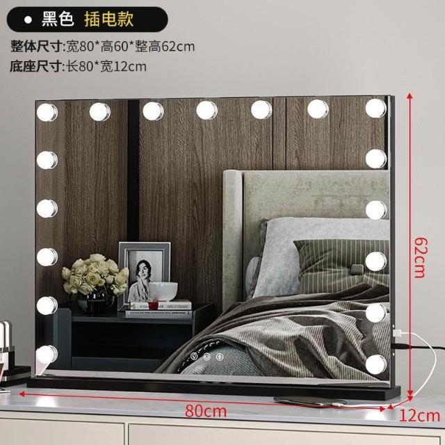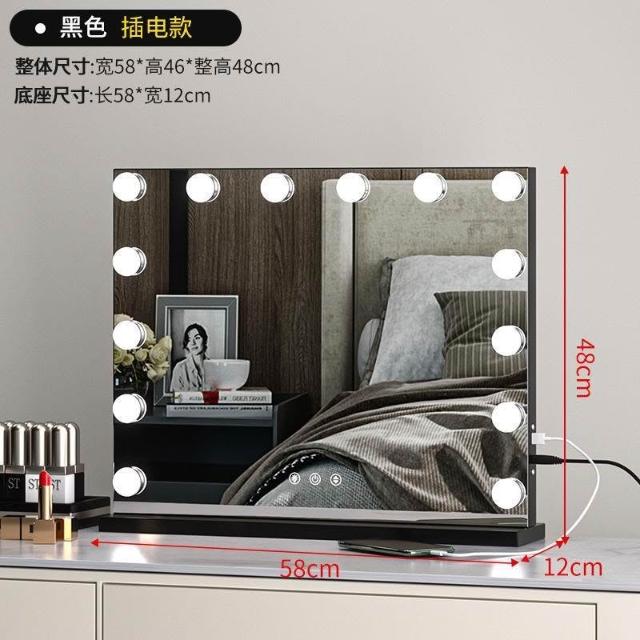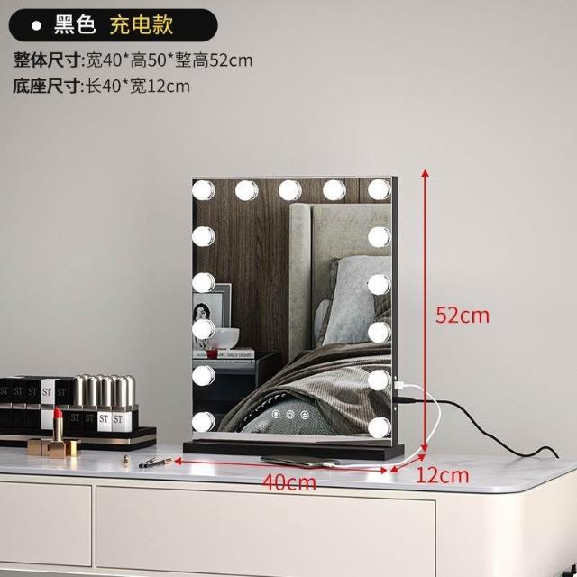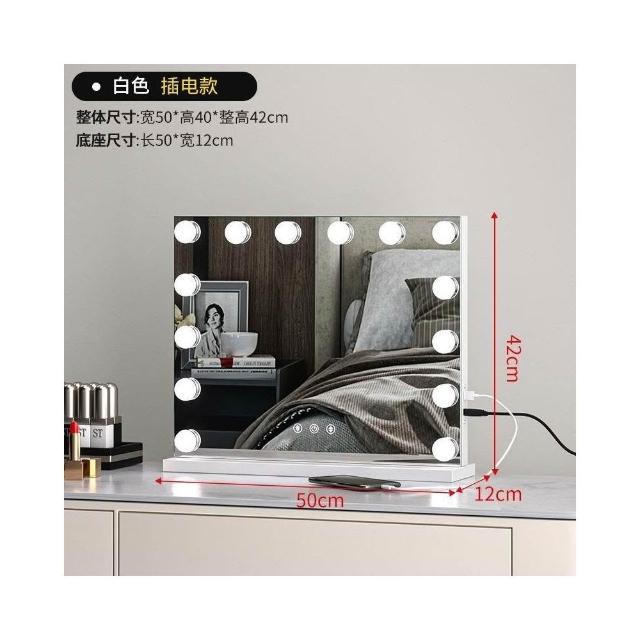 化妝鏡 梳妝台 燈泡美妝鏡 大號桌面鏡 復古鏡子 臺式固定款智能補妝鏡高清鏡子
