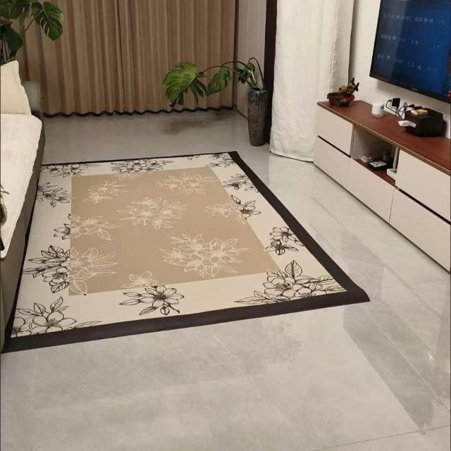 簡約風地墊 客廳地毯 奶油風地毯 沙發墊地毯 茶幾免洗可擦輕奢防水地墊PVC地墊 加厚地墊B款