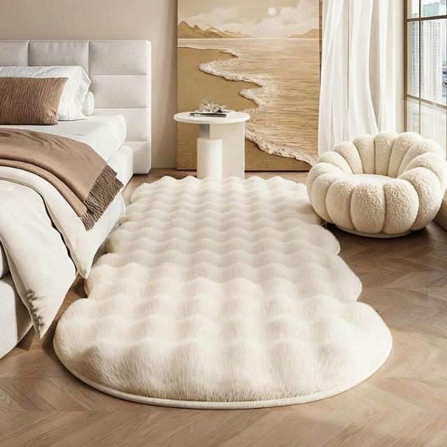奶油風地毯 仿兔毛絨地毯 高級感少女地毯 客廳地墊 臥室地毯 厚地毯 毛毛地毯 灰色地毯 可愛風地毯 床邊地毯 室內地墊