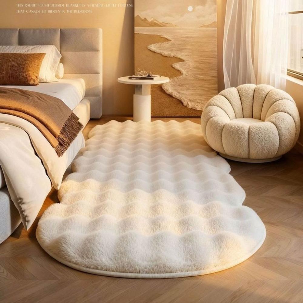 奶油風地毯 仿兔毛絨地毯 高級感少女地毯 客廳地墊 臥室地毯 厚地毯 毛毛地毯 灰色地毯 可愛風地毯 床邊地毯 室內地墊