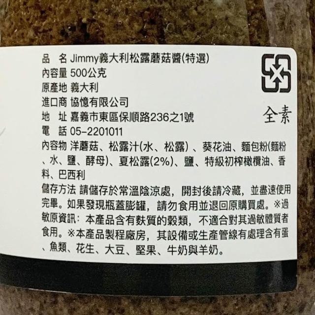 Jimmy 吉米義大利松露蘑菇醬(特選) 素食松露菌菇醬 素食 500G