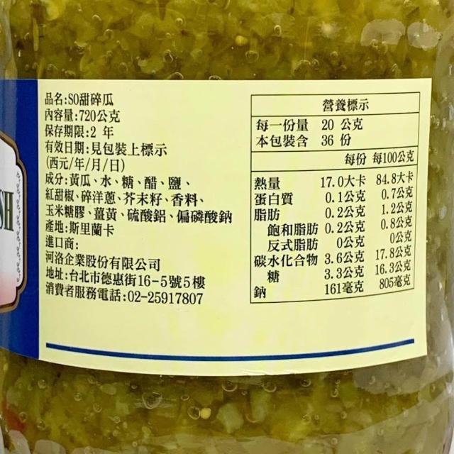 SO 甜碎瓜 Sweet Relish 720g/罐 酸黃瓜 酸黃瓜碎