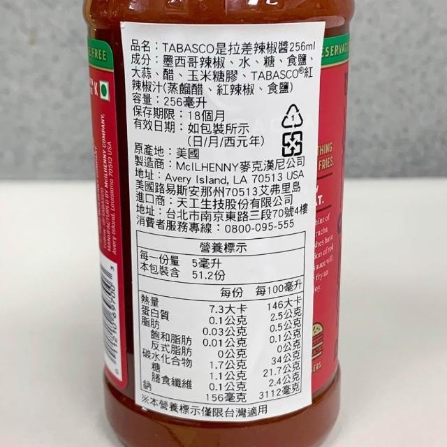 TABASCO SRIRACHA 是拉差辣椒醬 256ml 辣椒汁 辣椒醬