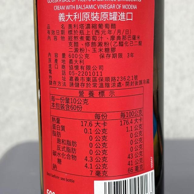 Olitalia 奧利塔濃縮葡萄醋 巴薩米克醋膏 600G