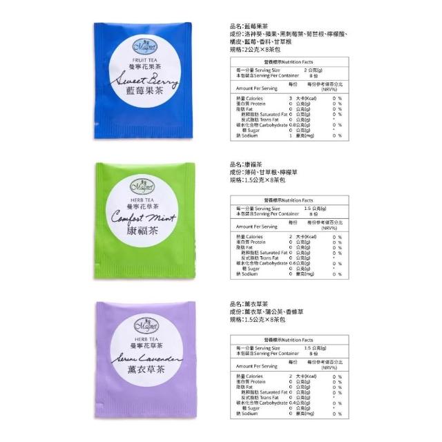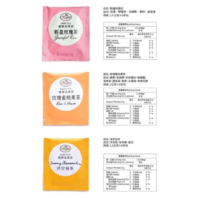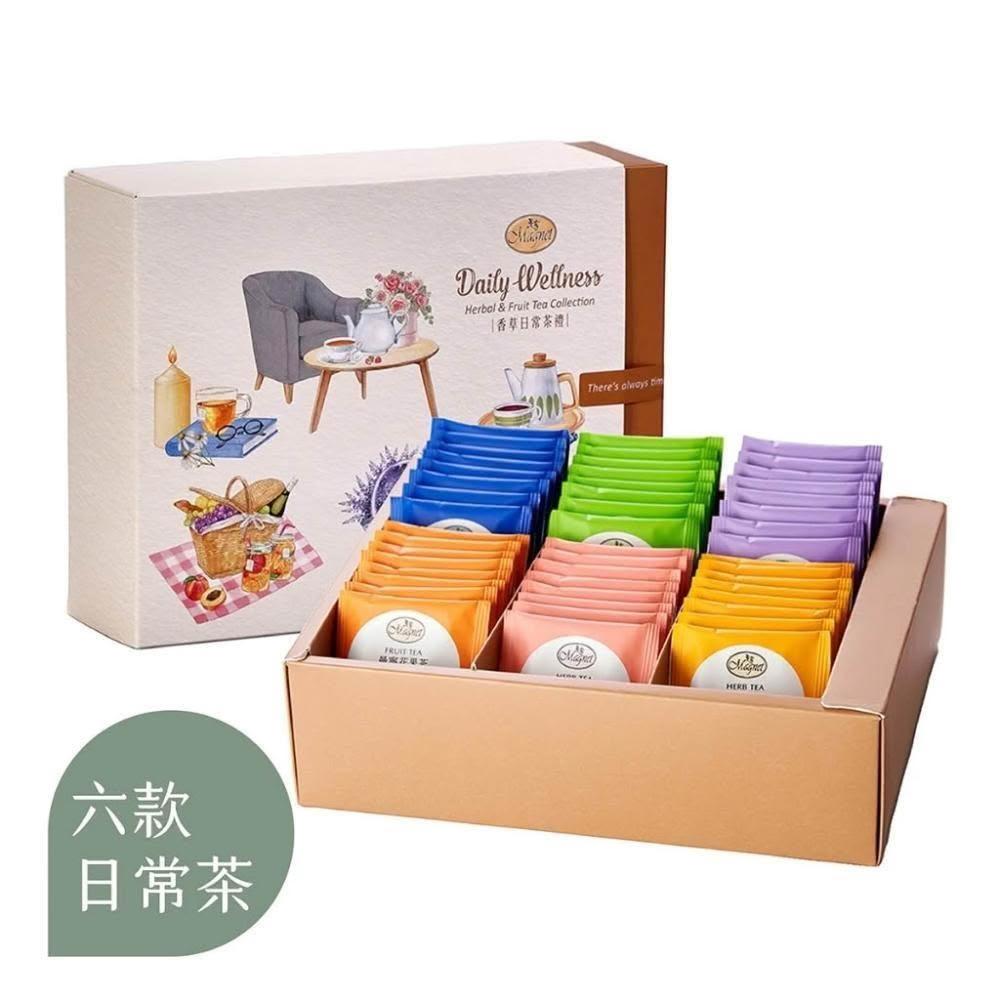 曼寧曼寧 香草日常茶禮 6款x8包 (附提袋) 茶包 禮盒 洋甘菊+薰衣草+藍莓果茶+輕盈玫瑰+康福茶+玫瑰蜜桃