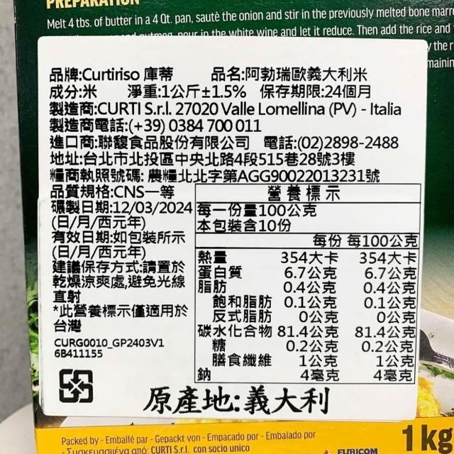 庫蒂 Curtiriso 義大利米 白米 燉飯 ARBORIO / CARNAROLI 1KG