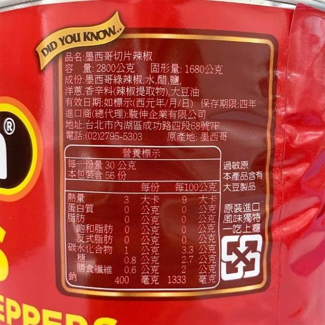 Lacostena墨西哥切片辣椒 墨西哥青椒片 2.8KG