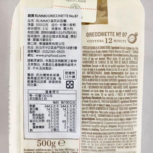 RUMMONo.87 貓耳麵 貓耳朵型麵 Orecchiette 500g 義大利麵