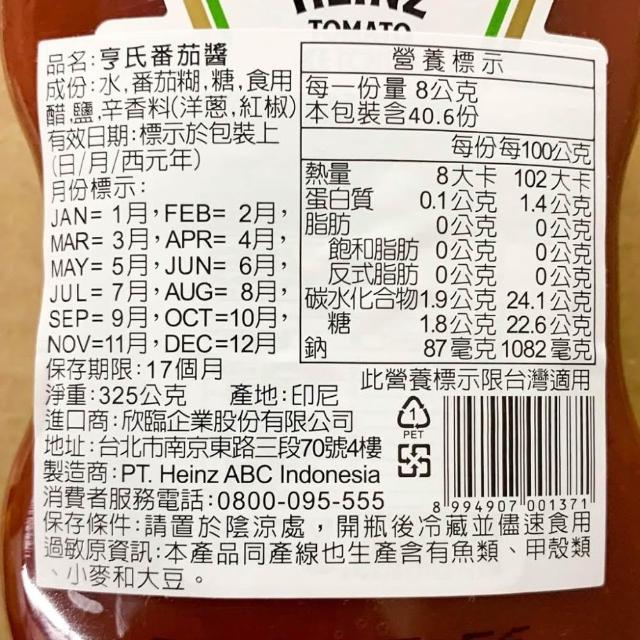 Heinz 亨氏 蕃茄醬 番茄醬 325G 倒瓶