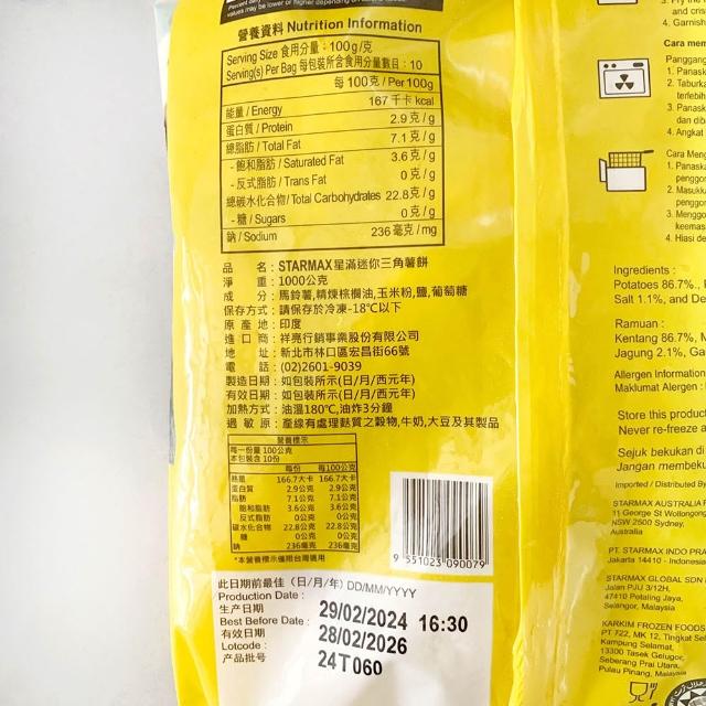 STARMAX 星滿迷你三角薯餅 三角薯餅 三角薯塊 迷你薯餅 薯製品 1KG