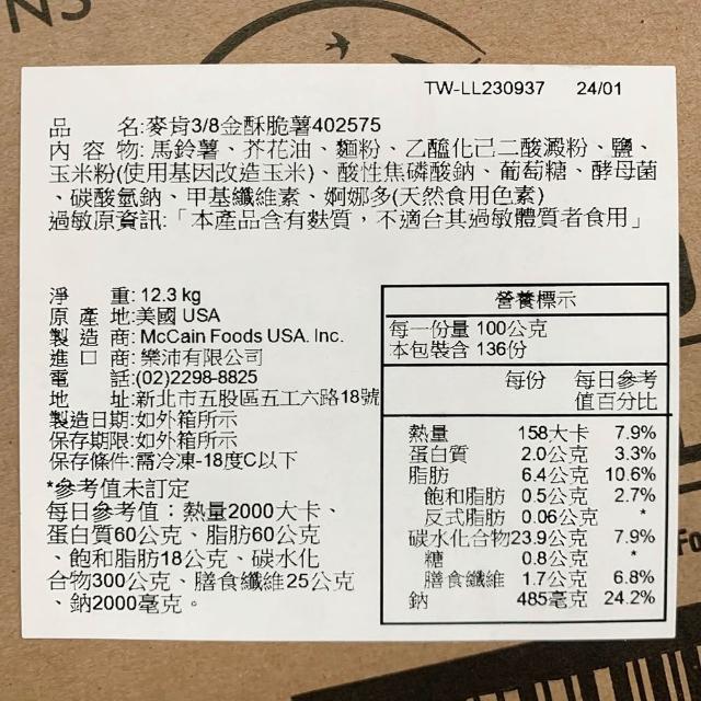 麥肯3/8金酥脆薯 薯條 脆薯 薯製品 炸物 2.05KG/包