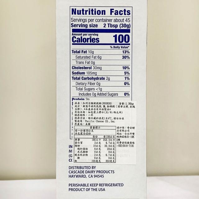 👉冷藏出貨 加州奶油乾酪 1.36KG 加州美國奶油乳酪 Cream Cheese 全脂軟乾酪