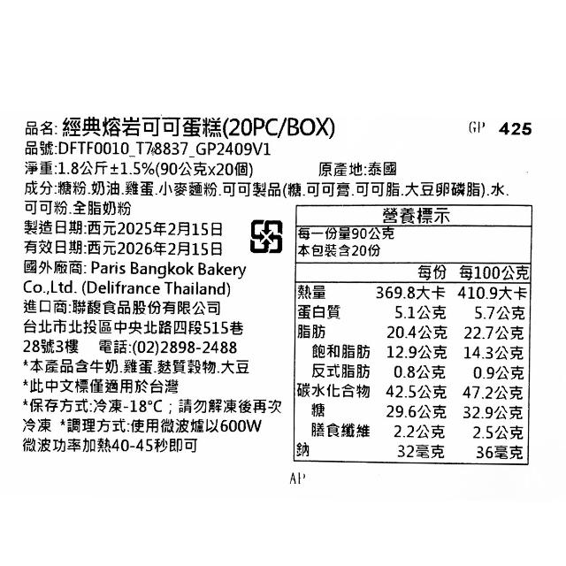 經典熔岩可可蛋糕 熔岩巧克力蛋糕 每盒20入