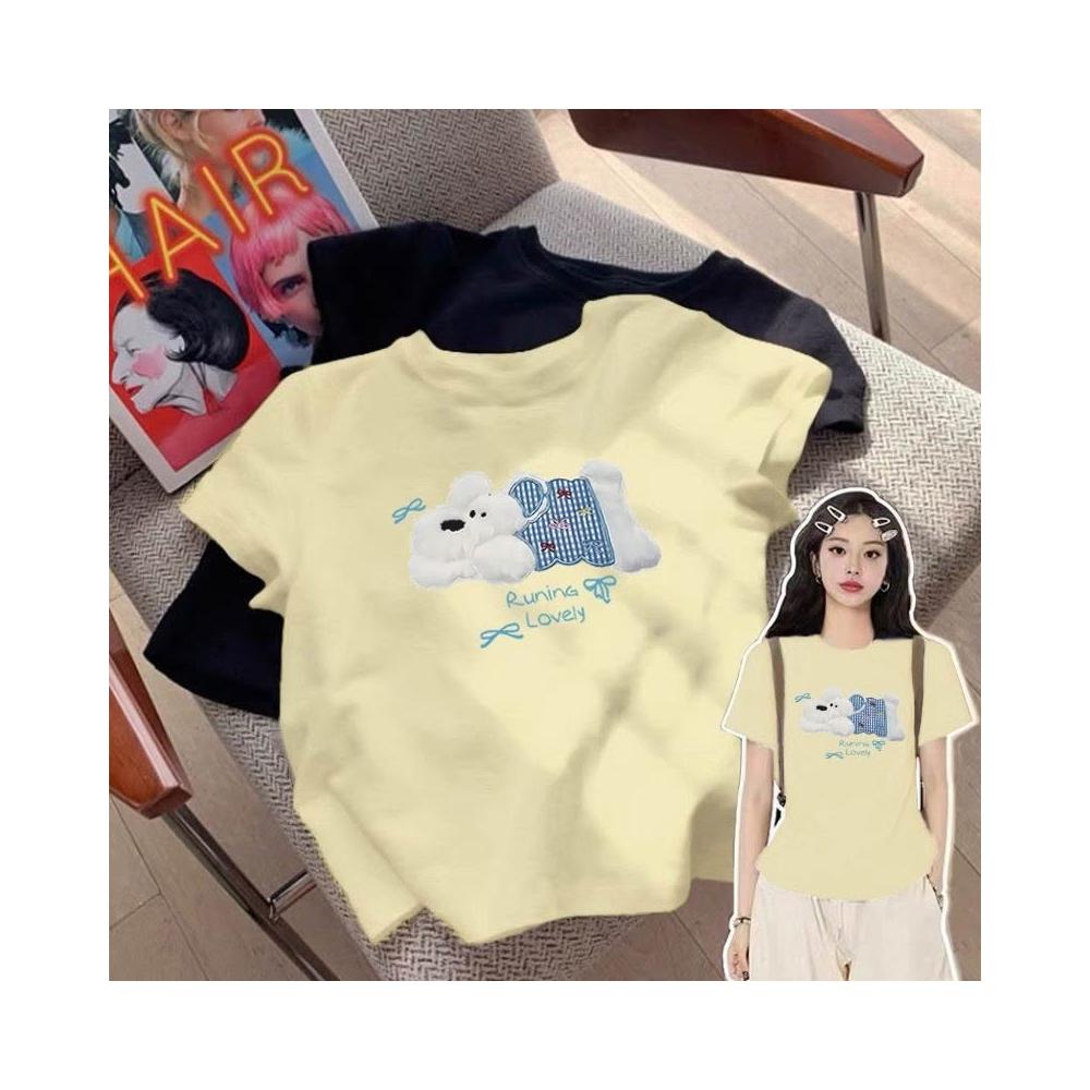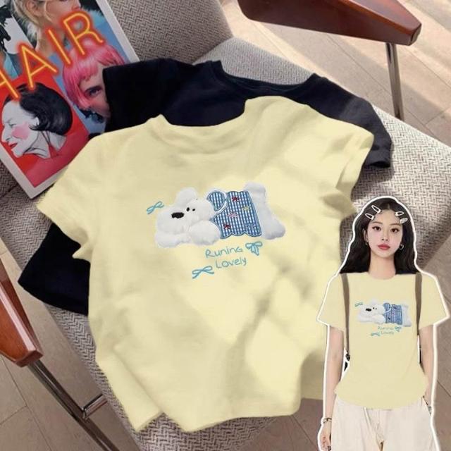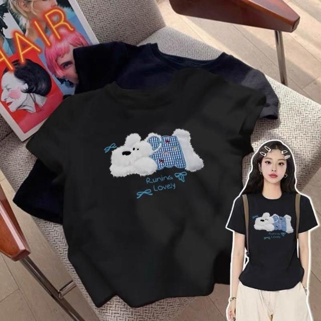 100%不起球正肩短袖 t恤 女春夏藏青色甜辣妹修身 上衣 潮