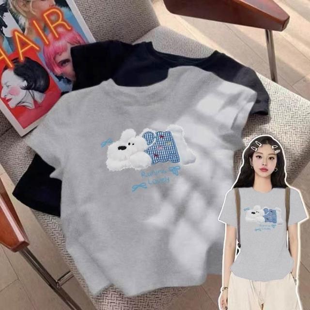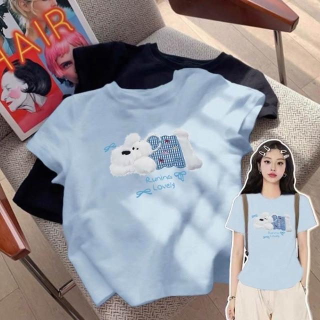 100%不起球正肩短袖 t恤 女春夏藏青色甜辣妹修身 上衣 潮