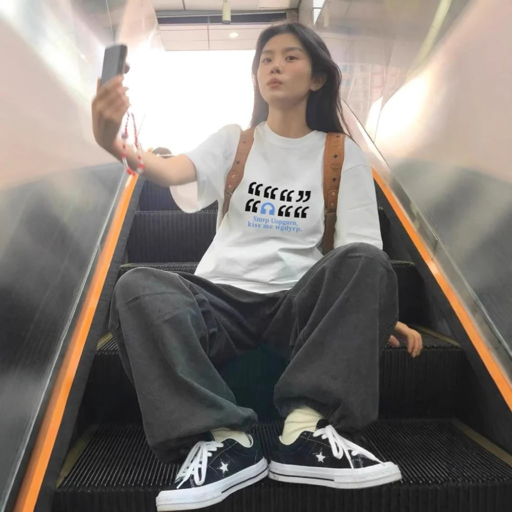 美式復古字母印花短袖 t恤 女夏季新款寬鬆百搭oversize原宿風撞色