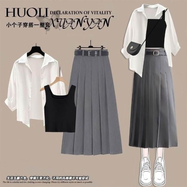 三件套秋季套裝女2025新款氣質防曬襯衫女百搭 背心 顯瘦西裝 半身裙
