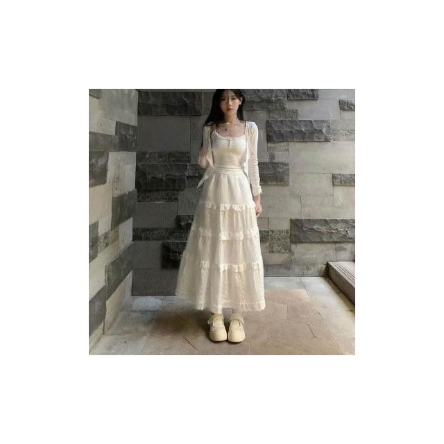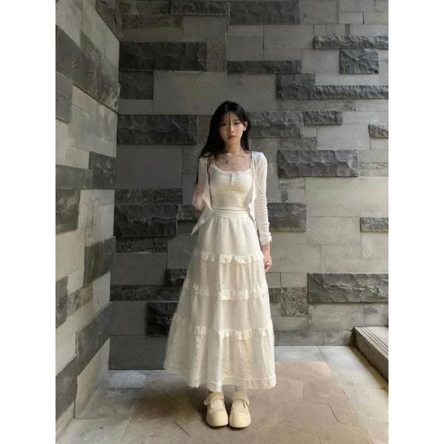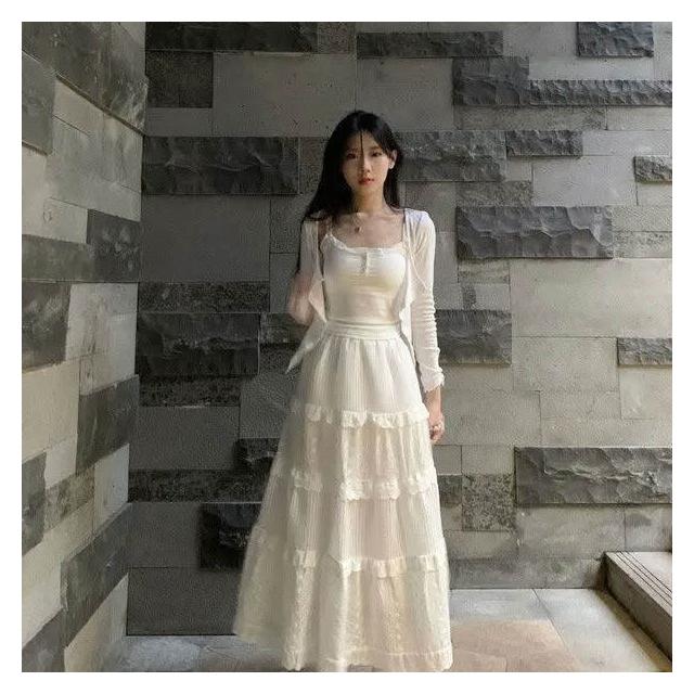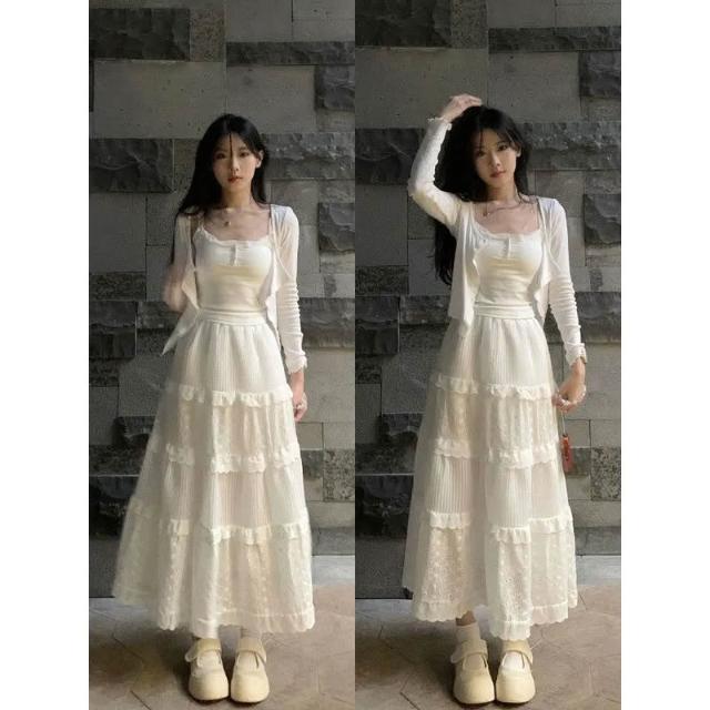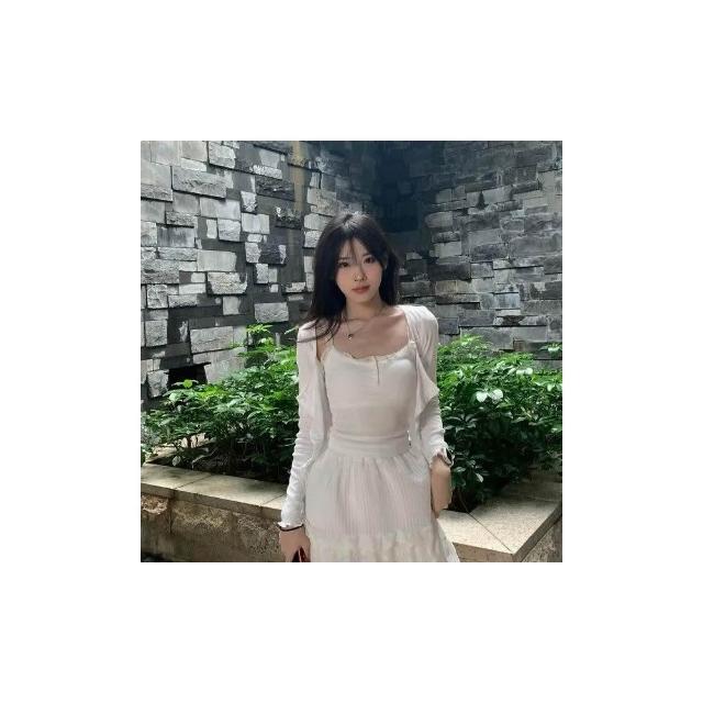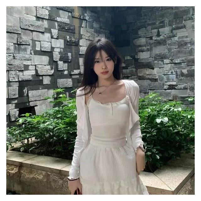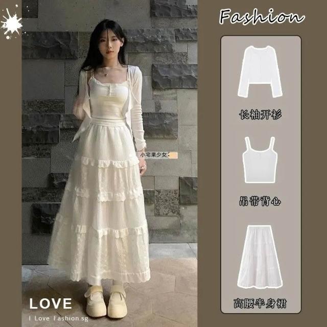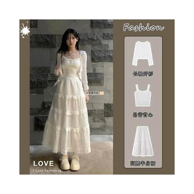 2981人收藏三件套裝女溫柔長袖針織防曬開衫春夏2024新款吊帶 背心 顯瘦 半身裙