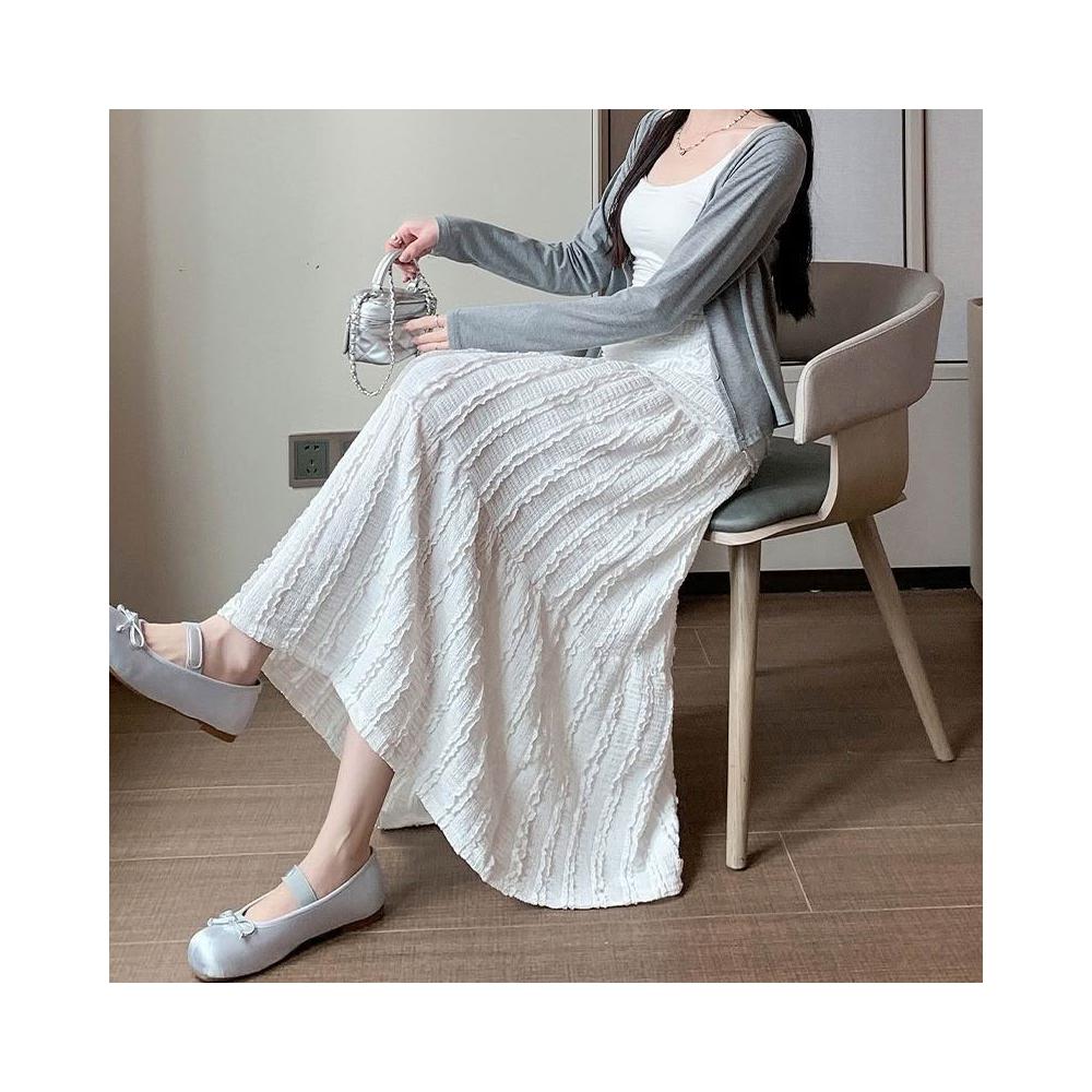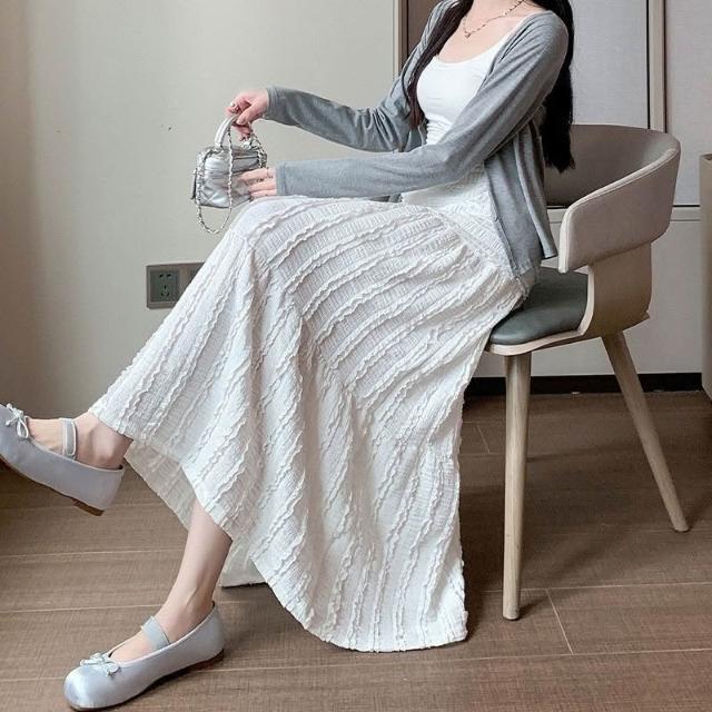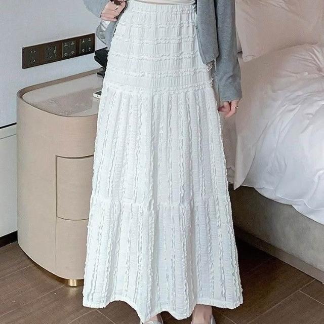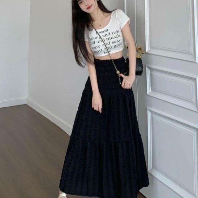 顯瘦高腰夏季新款法式時尚氣質 半身裙 鬆緊高腰顯瘦蕾絲中長款傘裙女百搭