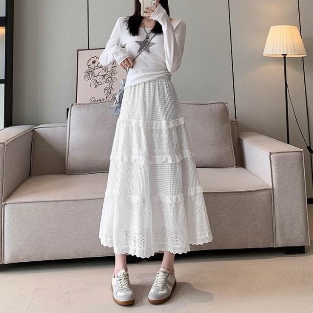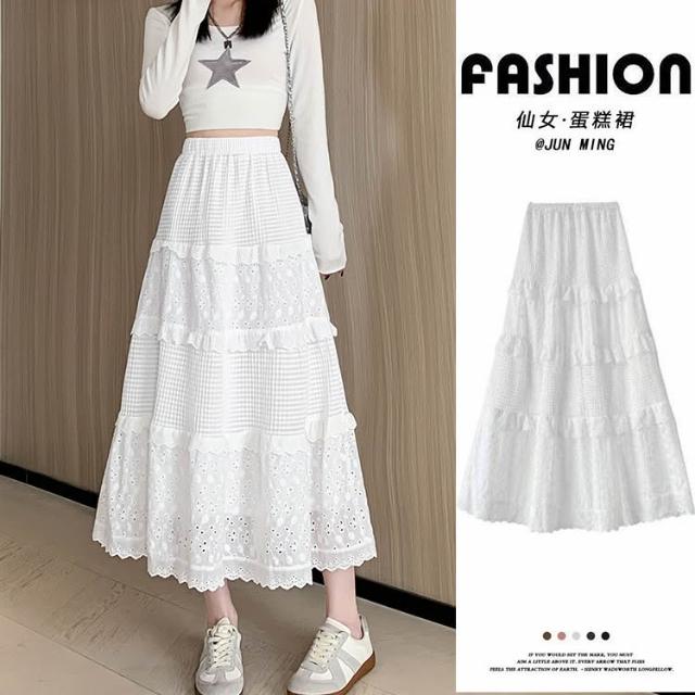白色蛋糕裙 花邊半身裙 溫柔風小個子中長裙 高腰氣質優雅裙子 白色蕾絲邊a字裙 蛋糕裙 中長裙 傘裙