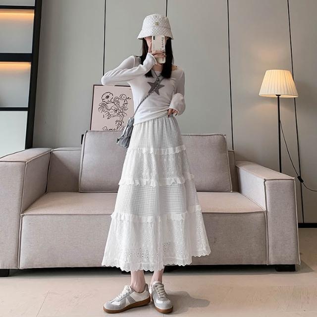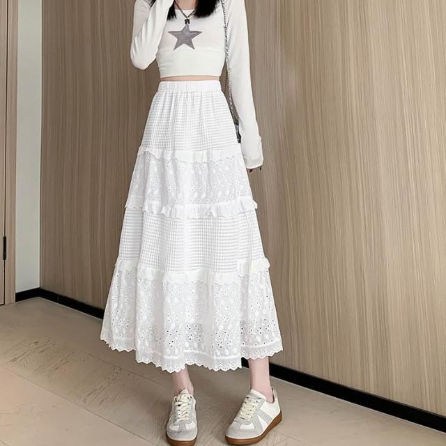 白色蛋糕裙 花邊半身裙 溫柔風小個子中長裙 高腰氣質優雅裙子 白色蕾絲邊a字裙 蛋糕裙 中長裙 傘裙