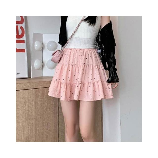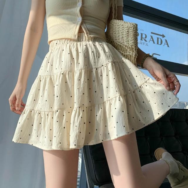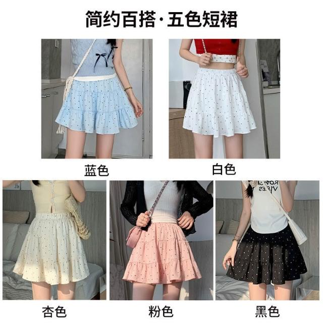 甜美時尚波點短裙女夏季新款小個子少女風蛋糕裙高腰顯瘦A字短裙