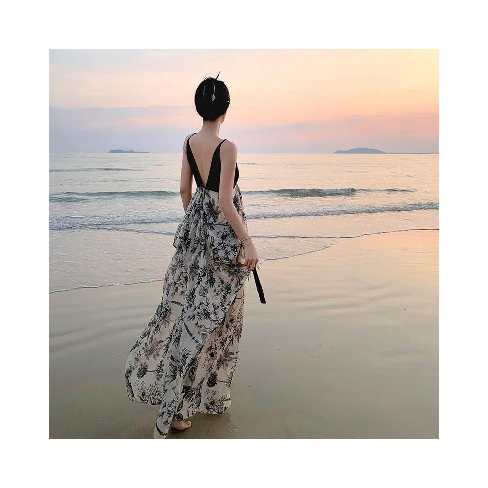 海邊穿搭 度假穿搭 雲南旅遊拍照穿搭女裝夏季超仙海邊度假露背洋裝三亞吊帶沙灘裙