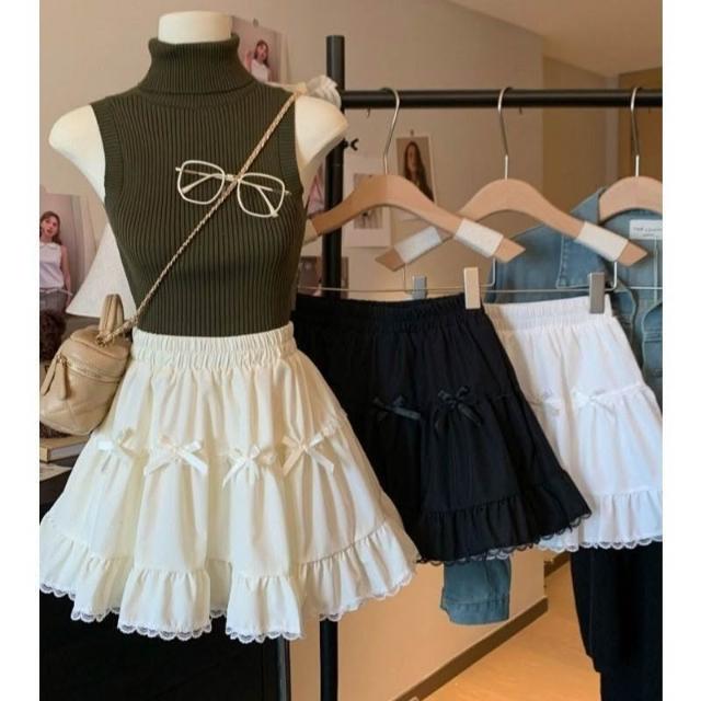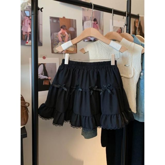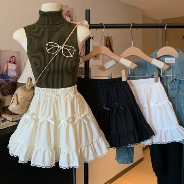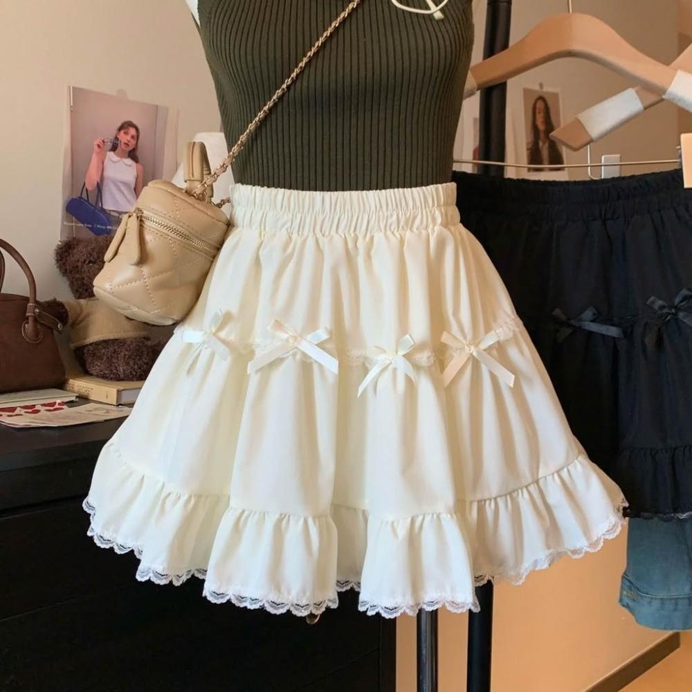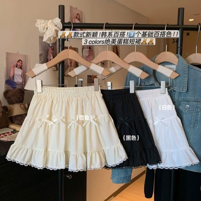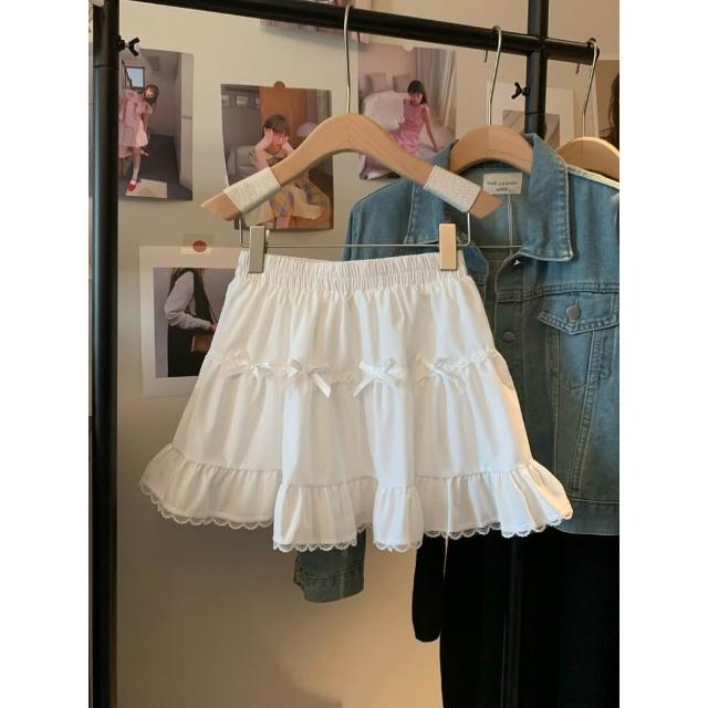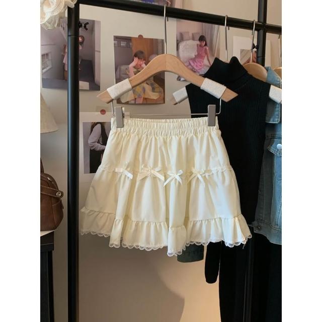 甜美2025年蝴蝶結白色 半身裙 夏季高腰蕾絲蛋糕裙顯瘦新款花邊短裙