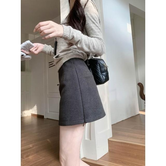 韓國~秋冬季爆款毛呢運動褲裙 高腰側開叉黑色包臀半身裙 女生短裙