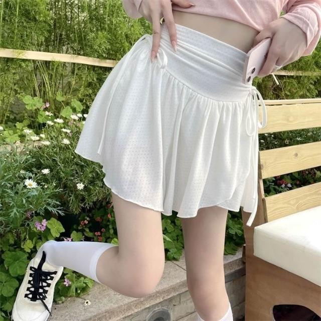 白色短裙 a字裙 法式純欲風短裙 抽繩褶皺設計款短裙 白色半身裙 夏季小衆裙子 a字短裙 冰絲短裙 褲裙 網孔透氣布料