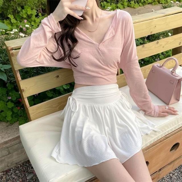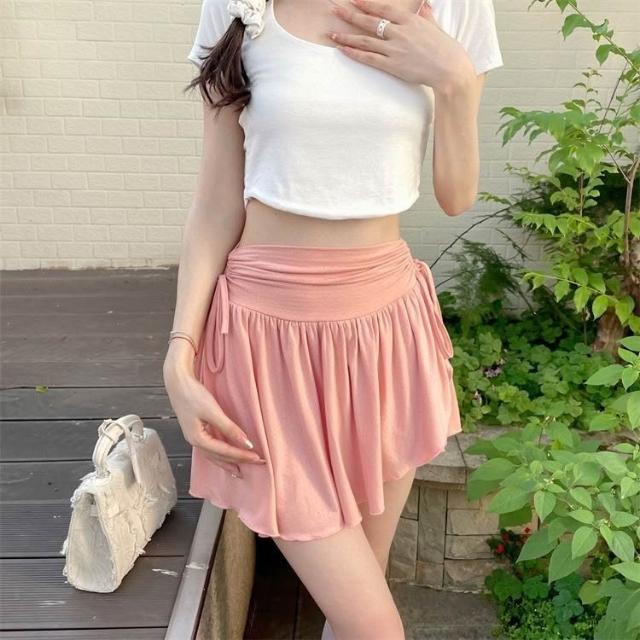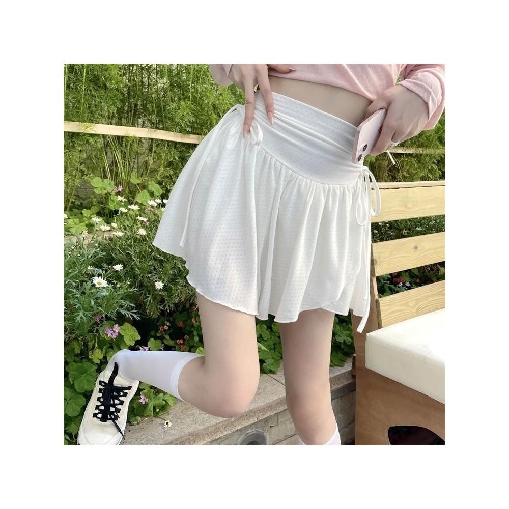 白色短裙 a字裙 法式純欲風短裙 抽繩褶皺設計款短裙 白色半身裙 夏季小衆裙子 a字短裙 冰絲短裙 褲裙 網孔透氣布料