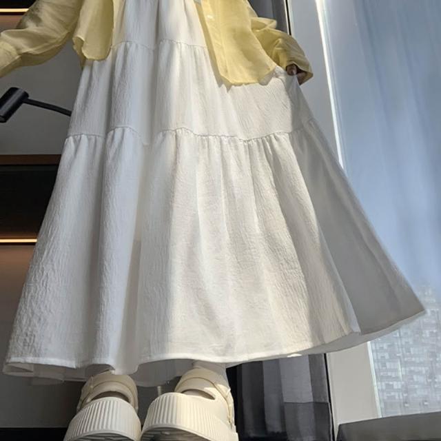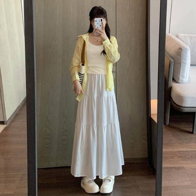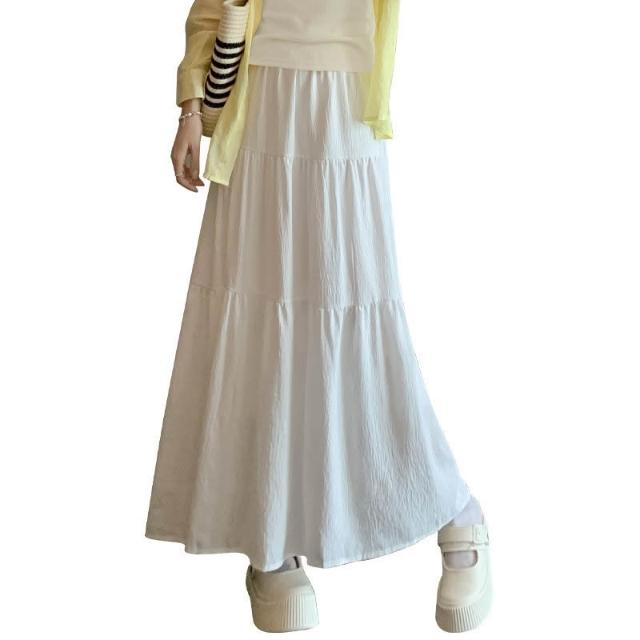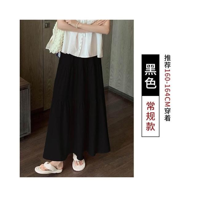 溫柔風粉色半身裙女春夏高腰中長款裙子顯瘦百搭A字裙冰絲皺長裙