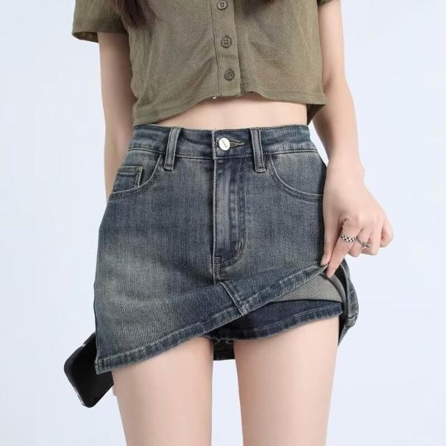 辣妹歸屬水洗復古牛仔半身裙女春季藍色高腰裙褲彈力緊身包臀短裙