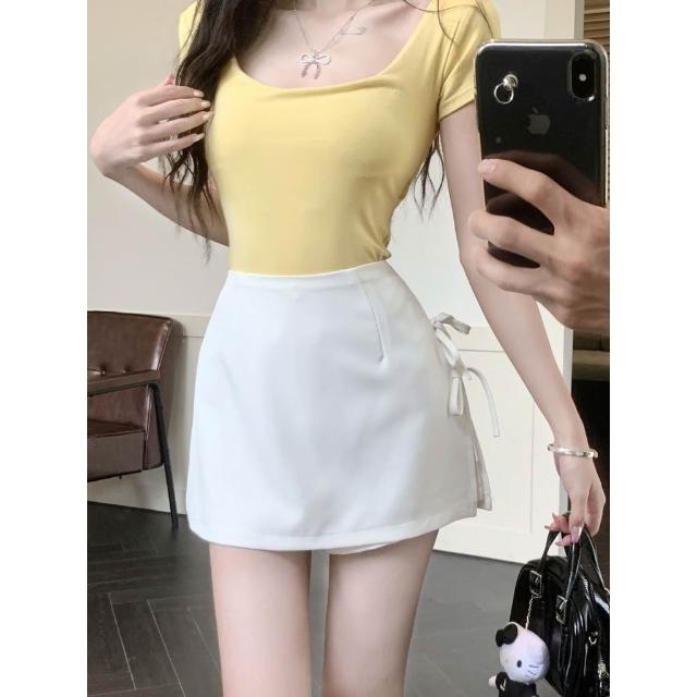 設計感蝴蝶結抽繩半身裙女高腰包臀百搭a字短裙