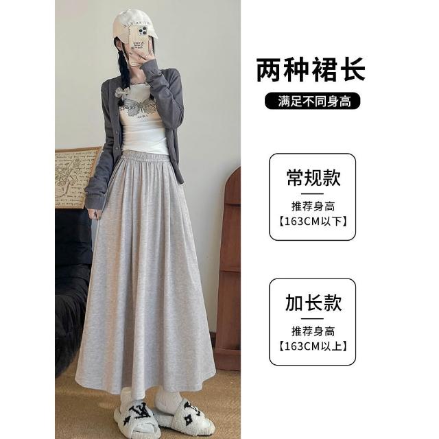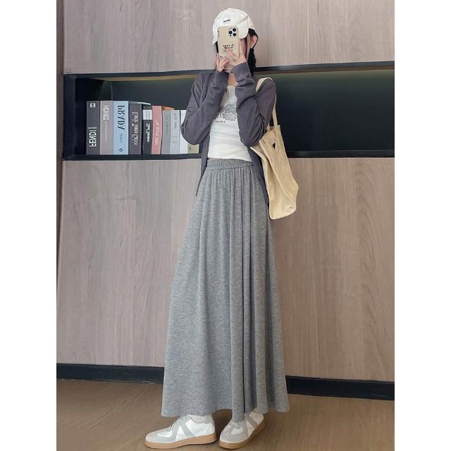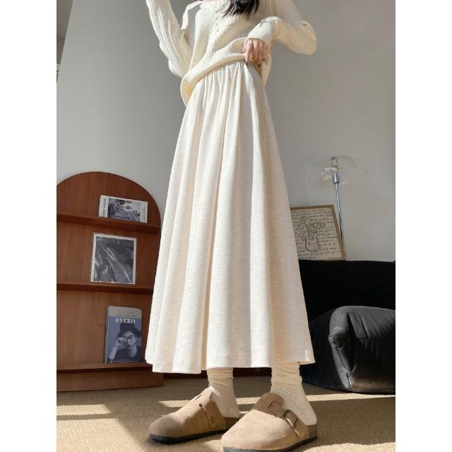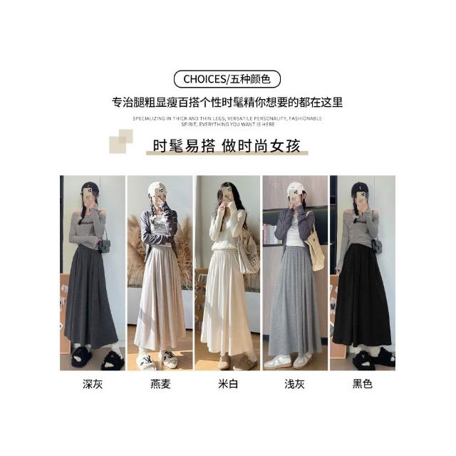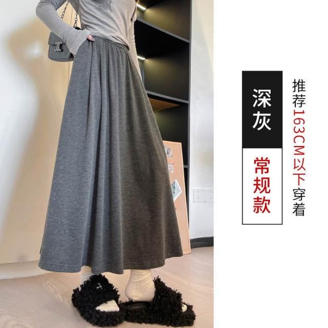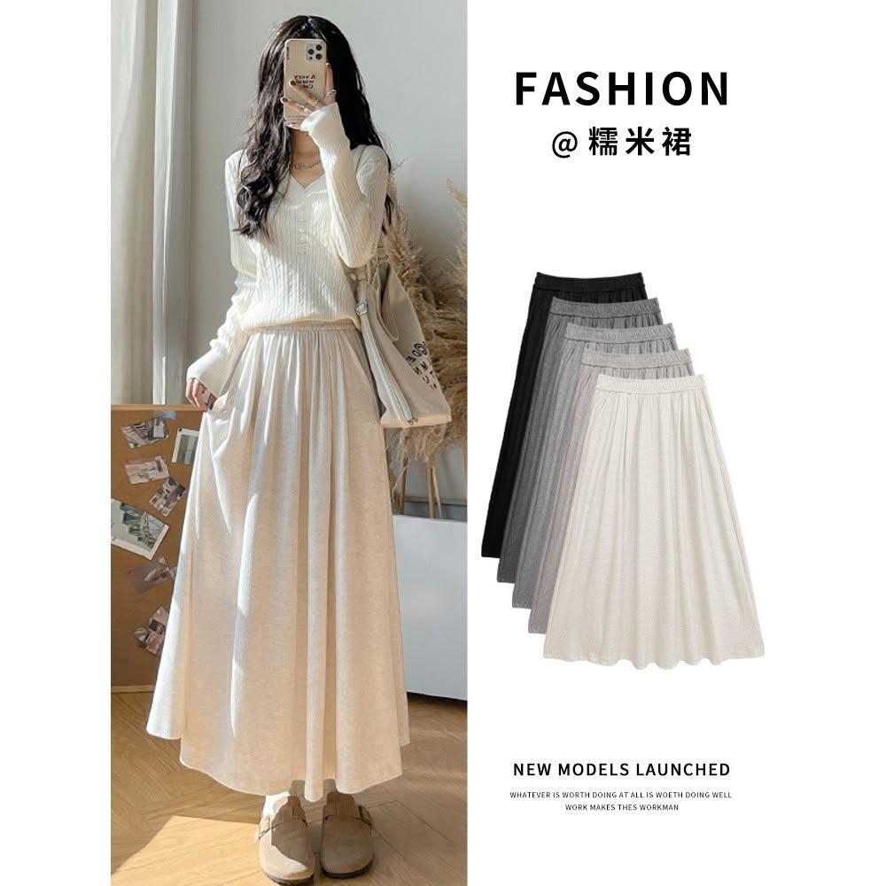 慵懶風半身裙 中長裙 針織糯米半身裙 女鞦鼕新款高腰顯瘦長裙 小個子A字裙 垂感傘裙 長裙