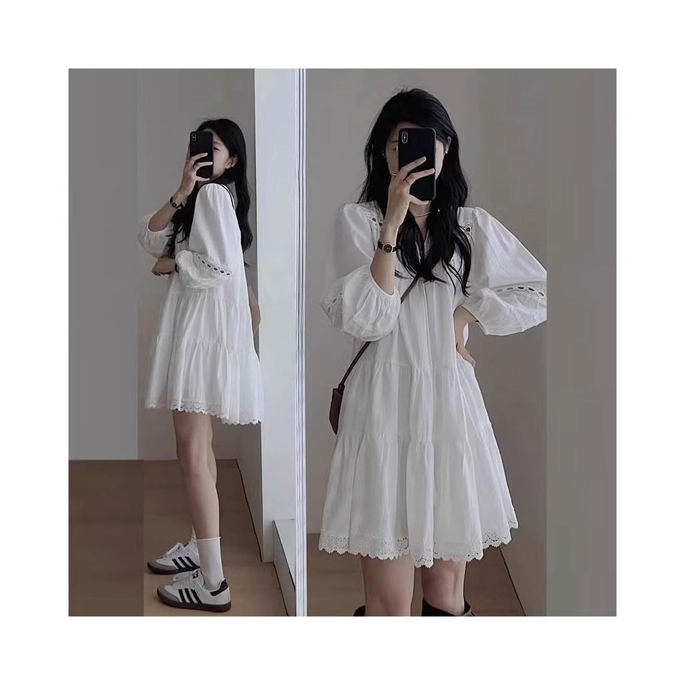 法式白色泡泡袖衬衫连衣裙女2025新款春夏小个子长袖云南旅游穿搭