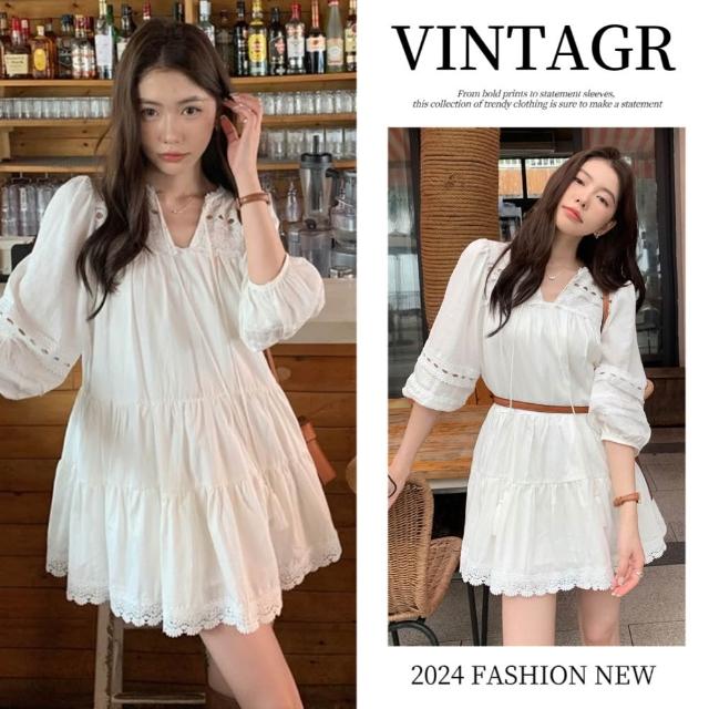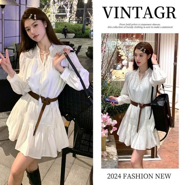 法式溫柔甜美連衣裙 泡泡袖連衣裙 收腰顯瘦 氣質洋裝 A字裙 V領 洋裝 長袖連身裙 茶系洋裝 露肩 雪紡洋裝