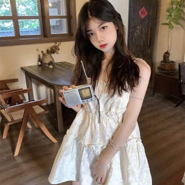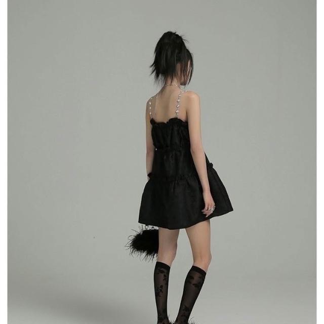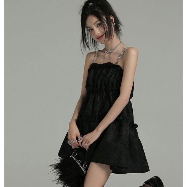 高腰露背新款小個子別緻連衣裙高檔吊帶連衣蓬蓬裙夏季獨特短裙