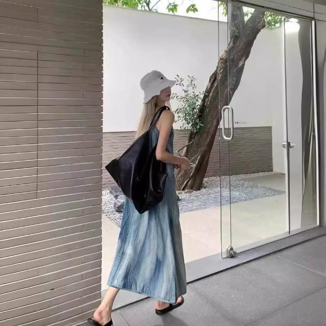 法式絕美扎染吊帶連衣裙女夏季寬鬆慵懶風三亞海邊度假沙灘長裙子